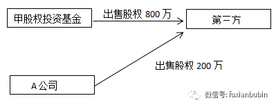 假設(shè)甲股權(quán)投資基金投資A公司,若此時甲股權(quán)投資基金占有的股份為20%,A公司的其他股東占有的股份為80%,此時若A公司擬出售1000萬股的股權(quán)給第三方,其交易結(jié)構(gòu)為:
