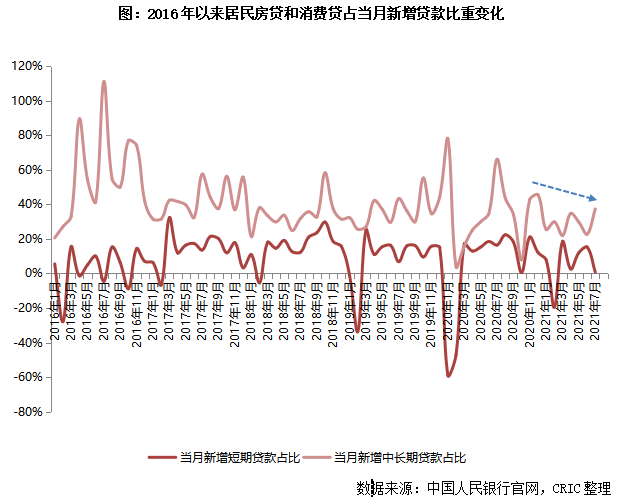 從全國層面來看,自年初央行推出房地產貸款集中度管理制度以來,住戶部門新增中長期貸款占比便呈現出波動下行趨勢,上半年基本保持在30%以內,7月雖略有回升,但總體也低于2020年末46%的階段性高點,這也意味著央行信貸收緊的政策初顯成效,居民高杠桿購房情況有所緩解。
