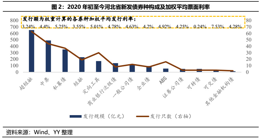 2020年初以來,信用債一級市場中,剔除同業存單后,河北省主體共發行262只,發行規模2,542.1億元;同期共償還380只債,償還規模3,155.5億元,融資凈流出達613.4億元。