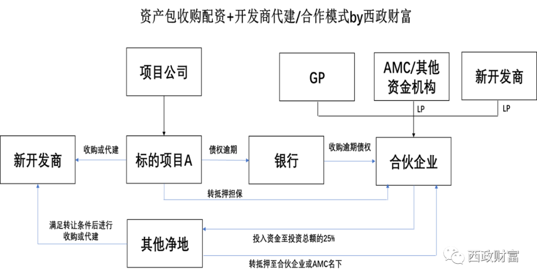 對于一些投資機(jī)構(gòu)前期對出險(xiǎn)開發(fā)商項(xiàng)目進(jìn)行投資后,目前一些AMC通過與出險(xiǎn)開發(fā)商搭建優(yōu)先劣后架構(gòu),由開發(fā)商將對項(xiàng)目的前期投入認(rèn)購劣后級的方式承接投資機(jī)構(gòu)已投入部分,并通過AMC指定的開發(fā)商參與項(xiàng)目后續(xù)的開發(fā)建設(shè),并獲取開發(fā)收益。