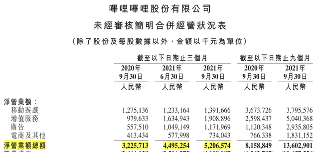 圖注:B站Q3財報