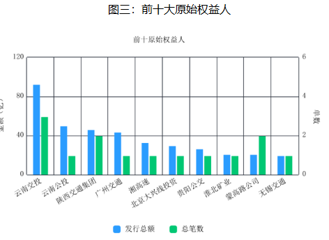 公交收費收益權是收費路橋收益權其中一種,除此之外還有汽車客運收費收益權、地鐵票款收費收益權、鐵路客運收費收益權、停車費收費收益權、高速車輛通行費收益權、港口服務費收益權等。收費路橋收益權發行概況如下圖所示: