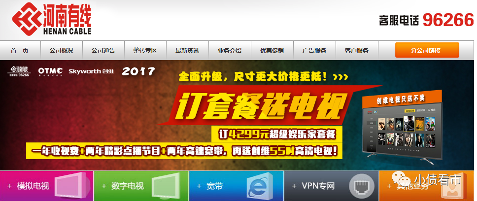 據官網介紹,河南有線是以傳輸有線電視信號為主業的網絡多業務運營企業,是河南省委、省政府確定的全省有線電視網絡整合和數字化整體轉換的實施主體,是河南省重點扶持的文化企業集團。