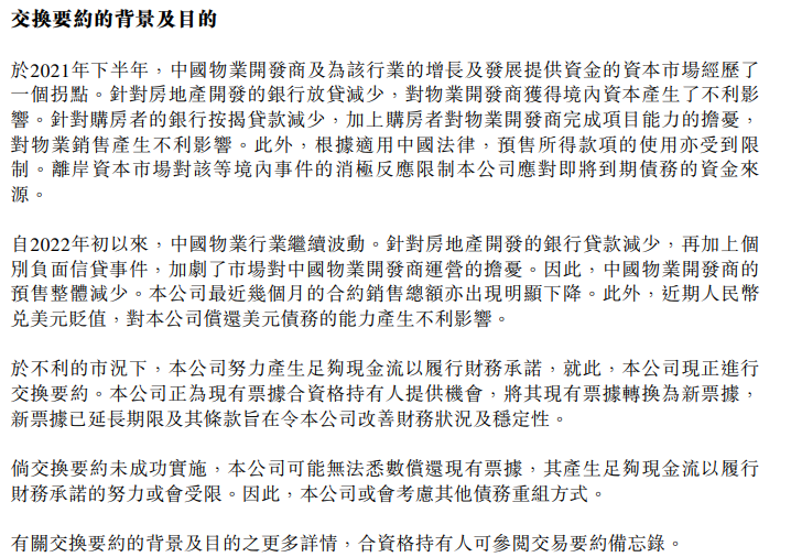 交換要約一經實行,將改善本公司的整體財務狀況、延長其債務的到期日、強化其資產負債表及提升其現(xiàn)金流管理。