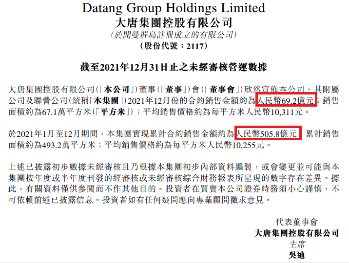 我們都說2021下半年房地產慘,但是對比起來,大唐集團控股的2021年12月似乎表現(xiàn)不錯。