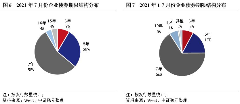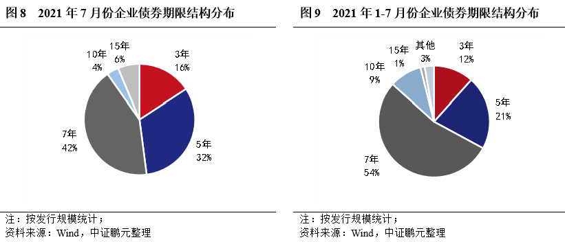 3. 7年期為企業債券主力期限品種,3年期和5年期品種占比環比上升