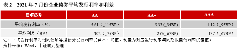 5. 7月企業債券平均發行利率下行、發行利差收窄