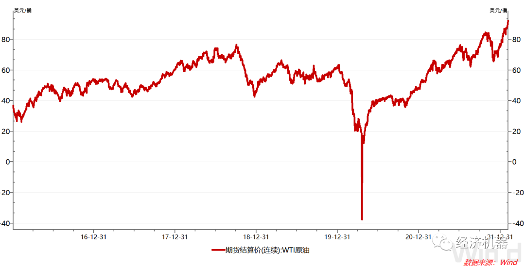 2月3日,以沙特和俄羅斯為首的OPEC+聯(lián)盟召開月度產(chǎn)油政策會(huì)議,堅(jiān)持原定計(jì)劃在3月增產(chǎn)40萬桶/日。而此前市場(chǎng)預(yù)期,OPEC+有可能加速增產(chǎn)。其后原油期貨也突破90元關(guān)口。春節(jié)期間(2022.1.31-2022.2.4)WTI原油期貨價(jià)格漲幅達(dá)4.72%,創(chuàng)2015年以來價(jià)格新高。