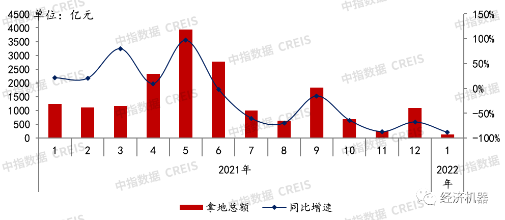 圖4 2021-2022年50家代表房企每月拿地總額