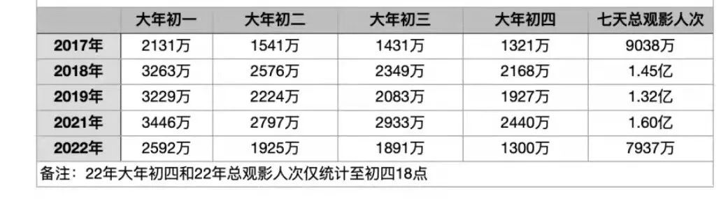 造成這一狀況的原因有很多,一方面2021年確實(shí)是電影大年,春節(jié)檔累計(jì)票房、觀影人次均創(chuàng)歷史紀(jì)錄;另外過高的票價(jià)以及一般的影片質(zhì)量也是重要的影響因素。今年春節(jié)檔電影單張票價(jià)比2021年總體提高10元,同時(shí)整體缺乏爆款。