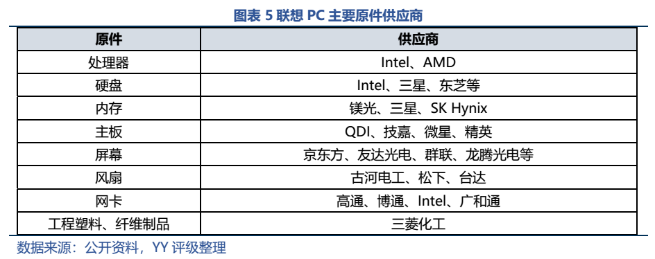 PC業(yè)務(wù)方面,聯(lián)想是全球最大的PC供應(yīng)商,2020年出貨量7266.9萬臺,占全球市場份額的24.9%,第二大供應(yīng)商惠普則占21.2%。在國內(nèi)市場上,聯(lián)想更是保持絕對的領(lǐng)先優(yōu)勢。不過由于處理器、硬盤、內(nèi)存等元件都是源于外購,因此聯(lián)想一直被詬病為“組裝廠”。
