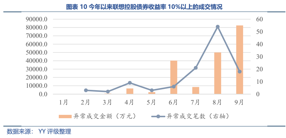 聯(lián)想控股也是境內(nèi)發(fā)債主體,其去年下半年以來YY隱含上升趨勢明顯,其中一部分是企業(yè)自身資質(zhì)的波動(dòng)引致(大額海外并購風(fēng)險(xiǎn)、債務(wù)累積風(fēng)險(xiǎn)等),一部分是受滴滴被查、APP下架事件拖累, 9月以來隨著滴滴輿論熱度冷卻,聯(lián)想的估值有所回落。