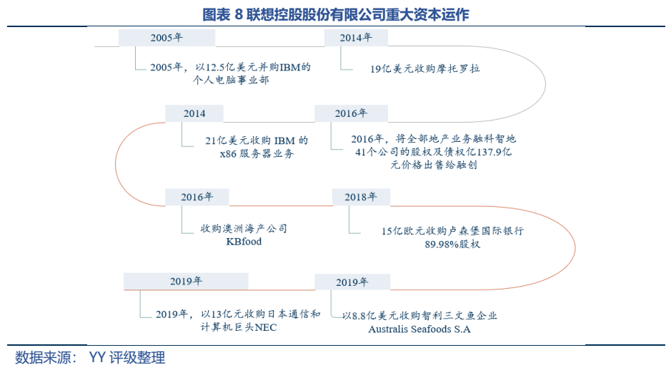 在去年11月,YY評級也在《聯(lián)想:貿(mào)工技時(shí)代的謝幕》一文中對聯(lián)想控股的情況進(jìn)行過梳理,總體來說,一方面是個(gè)別管理層人員掌握了企業(yè)的控制權(quán)造成短視行為,企業(yè)專注短期的利潤,自然不會專注道阻且長的研發(fā)之路,另一方面是多元化戰(zhàn)略下企業(yè)持續(xù)海外并購,使聯(lián)想未能將主要精力與資源聚焦于核心技術(shù)的突破。