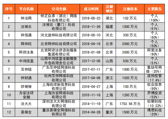 法律服務(wù)類平臺約有12個,平臺綜合運用互聯(lián)網(wǎng)技術(shù)、法律手段和金融工具,為客戶提供網(wǎng)絡(luò)仲裁、司法處置等服務(wù)。