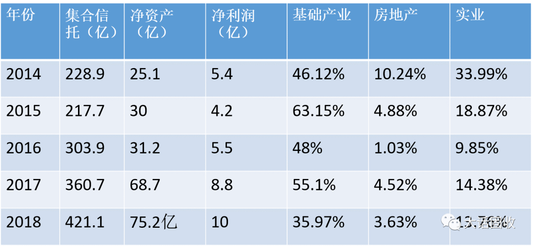 從經營上來看,2017年之后有比較突出的變化。相比于前三年,凈資產與凈利潤雙雙翻倍,集合信托管理規模也接近翻倍。2017年發生了什么呢?