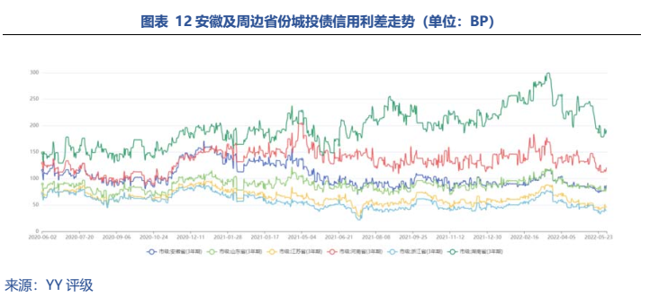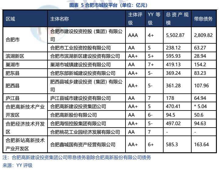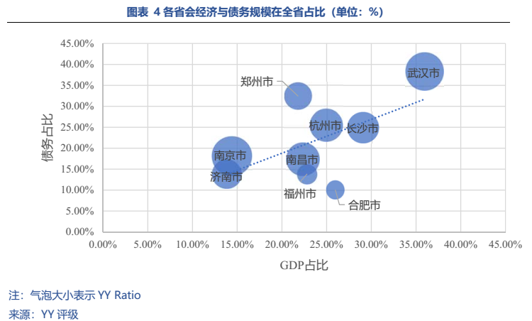令人驚喜的是,取得優秀成績的同時合肥債務負擔并不重,21年 YY Ratio僅429.55%。優秀的經濟發展前景結合低債務率,再加上區域平臺融資較為優秀,使得合肥仍有下沉挖掘的空間。