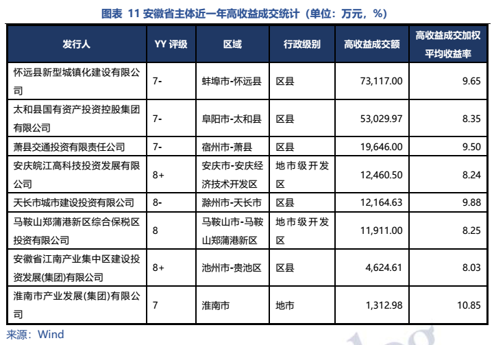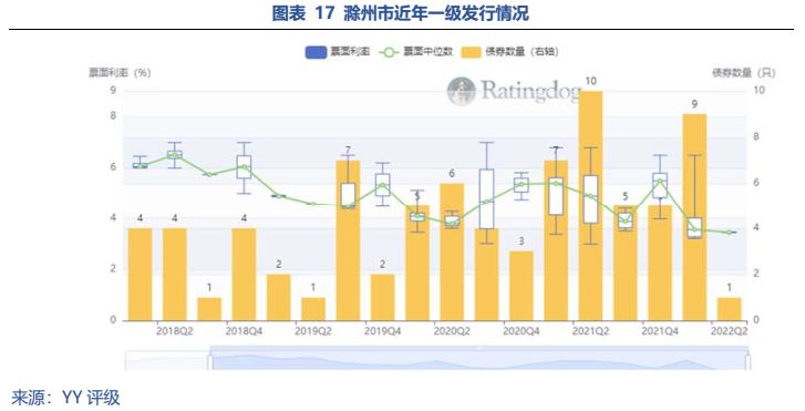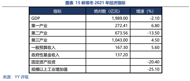 除合肥外,省內其他地市平臺較為平庸,地級市主平臺以AA和AA+為主,整體沒有特別網紅的區域,蚌埠近年產業發展面臨困境需關注風險。