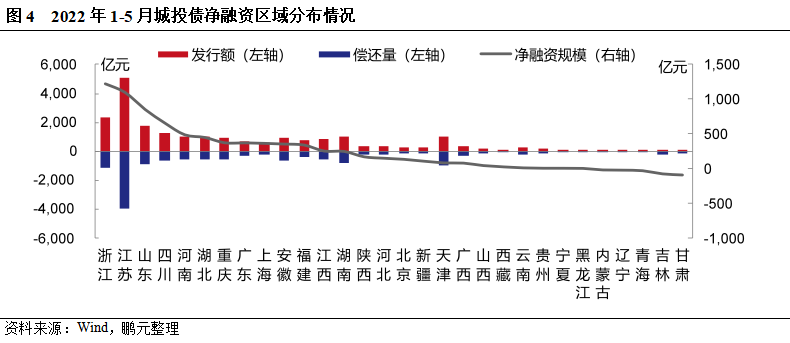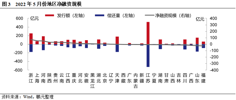 3. 5月份全國各地城投債融資以凈償還為主,共16省份為凈償還