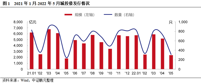 1. 5月份城投債發行規模環比“腰斬”,發行規模位于近兩年的低位