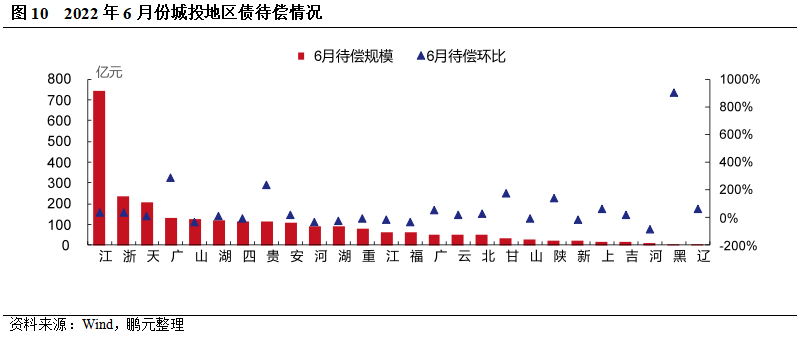 8. 6月份全國城投債待償規模環比上升,各地償債壓力尚可