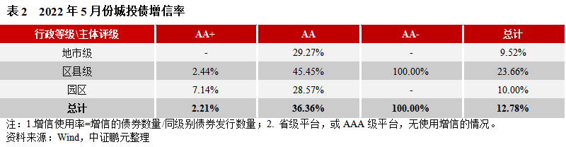 5. 5月城投債增信使用率下降,AA級園區主體增信使用率下降明顯