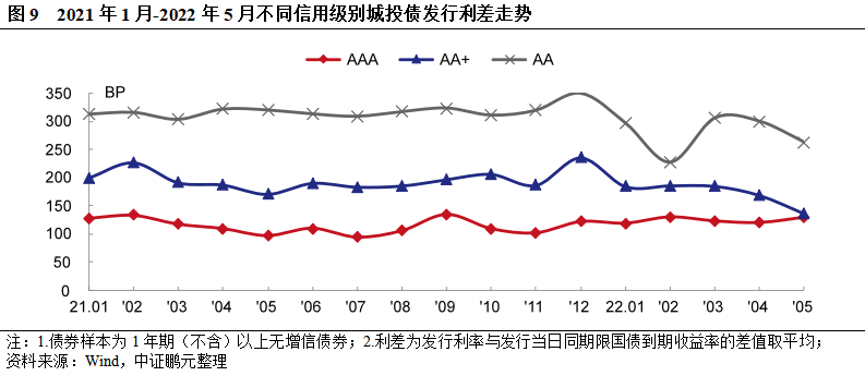 6. 5月份長期限城投債發行利率下行、AA+和AA級平臺利差收窄
