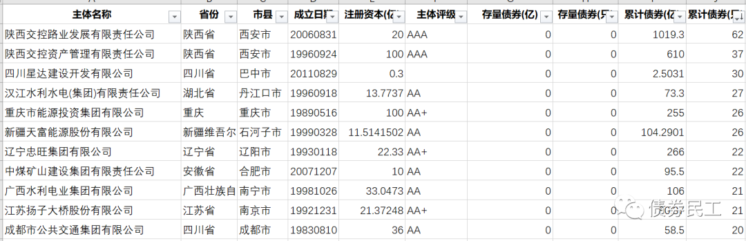 三、存量債券金額為零的城投公司發行人債券發行概況