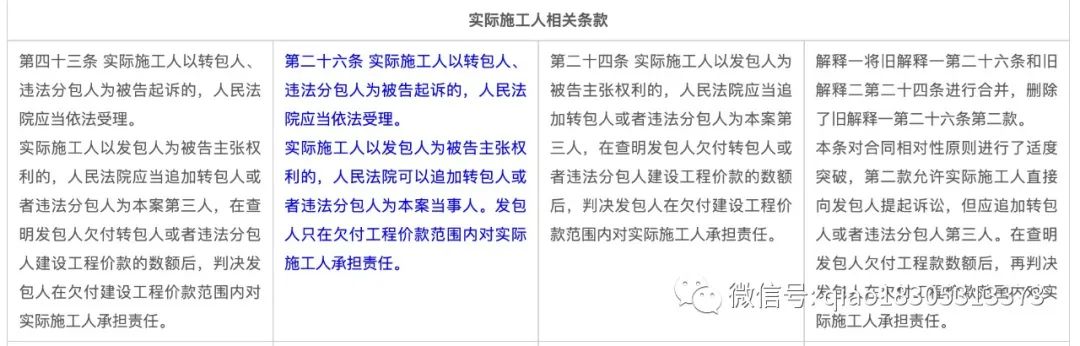 二、(已廢止)《最高人民法院關于審理建設工程施工合同糾紛案件適用法律問題的解釋》(二)第二十四條實際施工人以發包人為被告主張權利的,人民法院應當追加轉包人或者違法分包人為本案第三人,在查明發包人欠付轉包人或者違法分包人建設工程價款的數額后,判決發包人在欠付建設工程價款范圍內對實際施工人承擔責任。