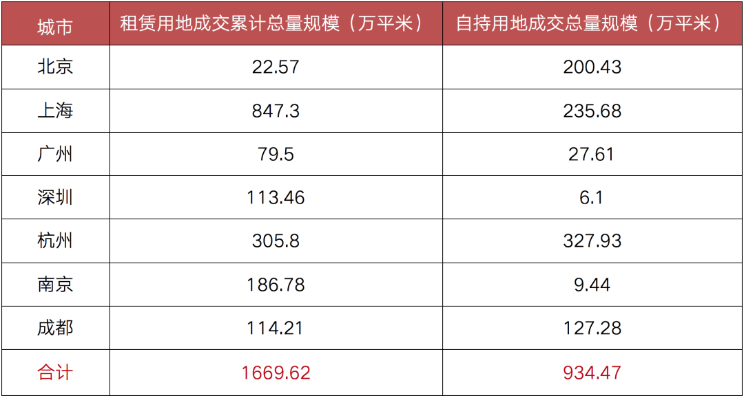 租賃用地和自持用地成交規模情況