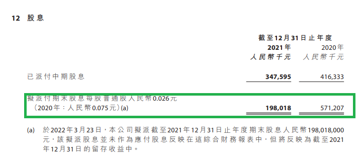 即便算上中期股息,也是很少,中期2020年派了4.16億元,2021年為3.48億元。