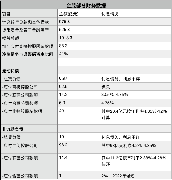 按照金茂年報(bào)的分列,金茂有息負(fù)債就是流動(dòng)負(fù)債和非流動(dòng)負(fù)債中的“計(jì)息銀行貸款及其他借款”,總計(jì)975.8億元。