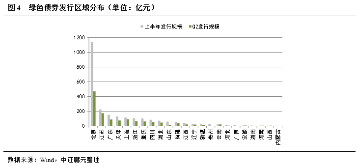 從資金用途來看,我們的分類標準參照4月21日人民銀行、發改委、證監會聯合發布的《綠色債券支持項目目錄(2021年版)》中的二級項目分類,除綠色服務類項目外,綠色項目被分為能效提升、可持續建筑、污染防治、水資源節約和非常規水資源利用、資源綜合利用、綠色交通、綠色農業、清潔能源、生態保護與建設9大類。2021年Q2清潔能源仍是第一大資金用途領域,發行規模為429.81億元,接下來是綠色交通、可持續建筑、污染防治,發行規模分別為235.90億元、88.01億元、76.97億元,其中,前三大資金用途領域均是碳中和債券領域。