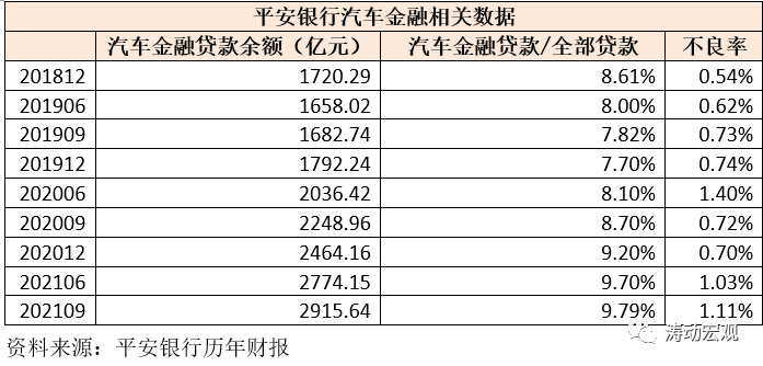 以平安銀行為例,2018年11月19日與2019年7月22日銀保監(jiān)會分別核準平安銀行汽車消費金融中心籌建與開業(yè),其今年9月底的汽車貸款余額達到2915.64億元(較年初增長18.30%)、占全部貸款的比例接近10%,今年前9個月的汽車金融新發(fā)放貸款1958.95億元、同比增長23.70%。