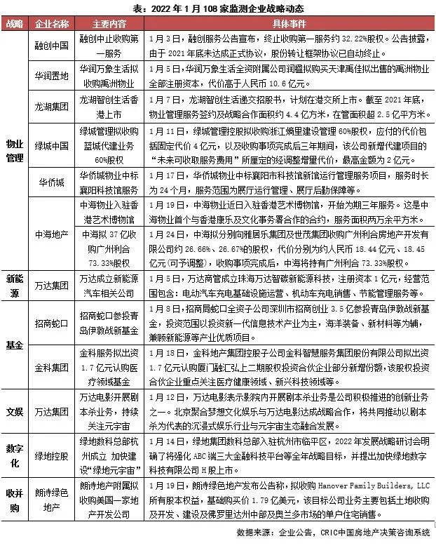 本月房企多元化業務活躍,熱度多集中于物業管理、基金等方面。物管行業持續整合,收并購在繼續,保持較高熱度。萬達拓展文娛業務,萬達商管助力新能源汽車發展。基金關注度不減,招商蛇口、金科參與熱情高漲。綠地數科入駐杭州,加快推動H股上市進程,龍湖智創生活遞交招股書。朗詩拓展國外業務版圖,收購美國地產開發公司。