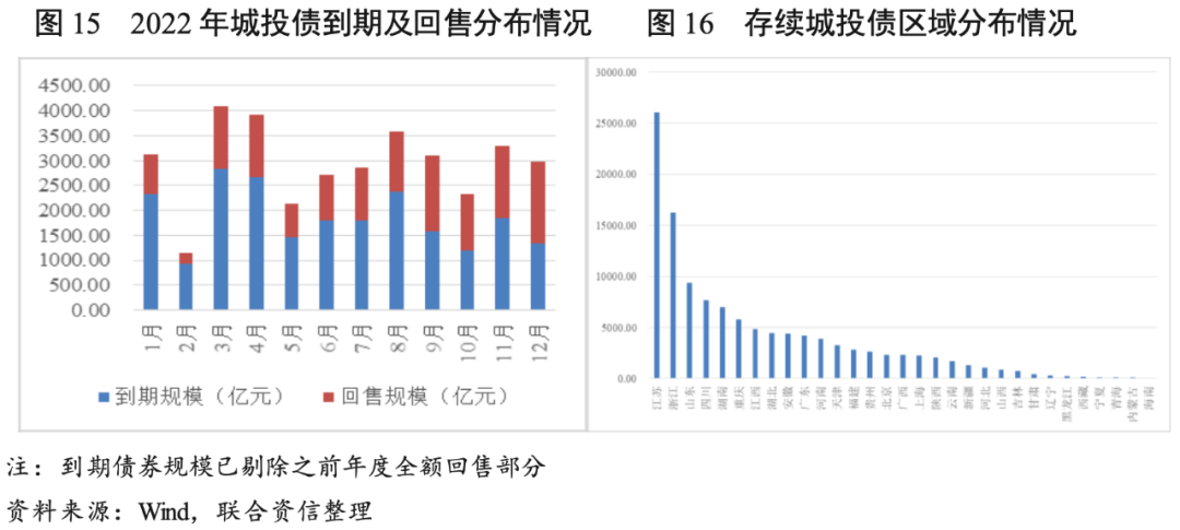 部分地區城投債集中到期壓力較大,重點關注短期償債壓力大及出現借款逾期、欠息、擔保代償、非標逾期等負面事件尾部城投企業的信用風險。