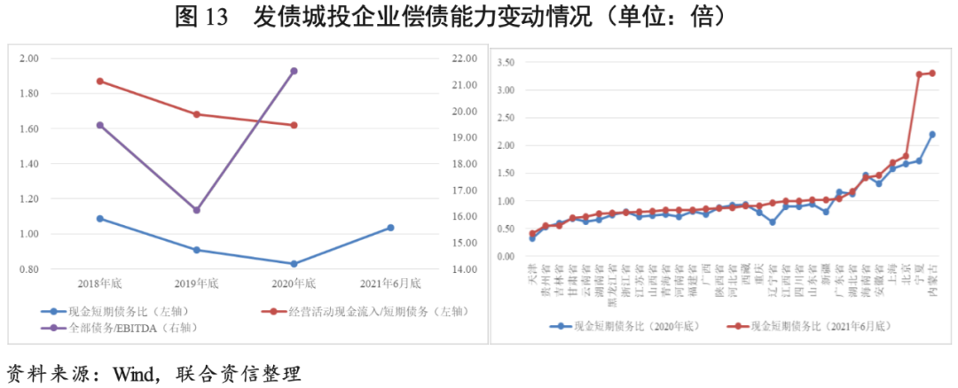 短期償債能力指標整體有所改善,但部分地區發債城投企業短期償債能力指標表現仍較弱。