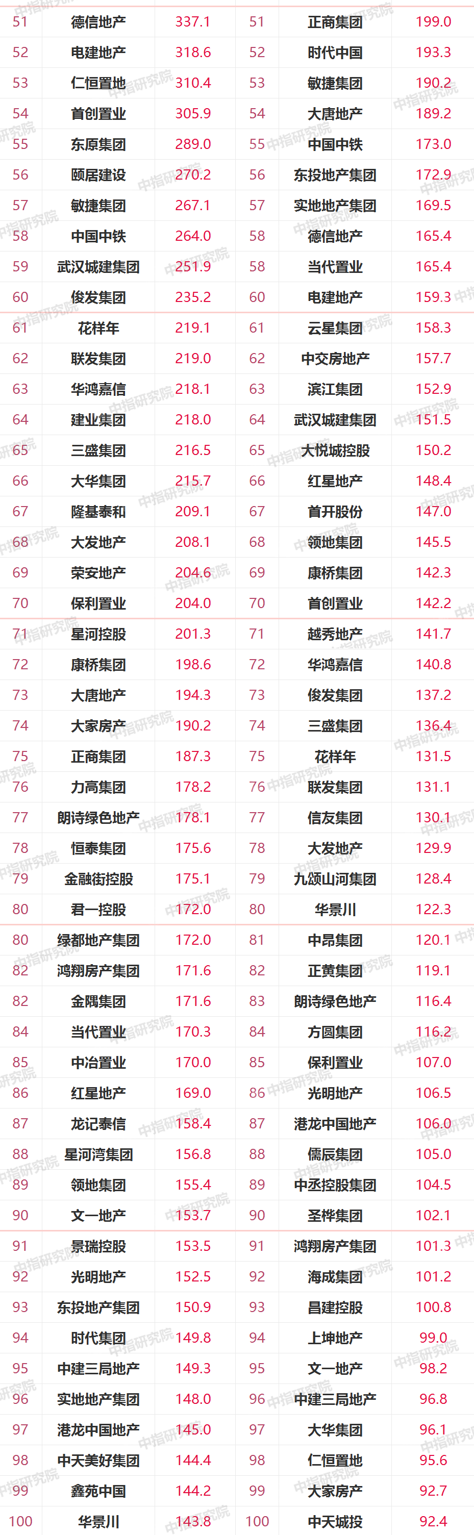 3)51-100位,俊發(fā)集團(tuán)、華鴻嘉信、三盛集團(tuán)、大華集團(tuán)、大發(fā)地產(chǎn)、正商集團(tuán)等降幅有點(diǎn)大,花樣年、當(dāng)代置業(yè)好像有點(diǎn)放飛自我。仁恒置地略有提升,位次從2021年前5月的53位,殺入前50,剛好50名。聯(lián)發(fā)集團(tuán)也殺入前50,49。中建三局地產(chǎn)也從95提升到51,差點(diǎn)就殺入50。