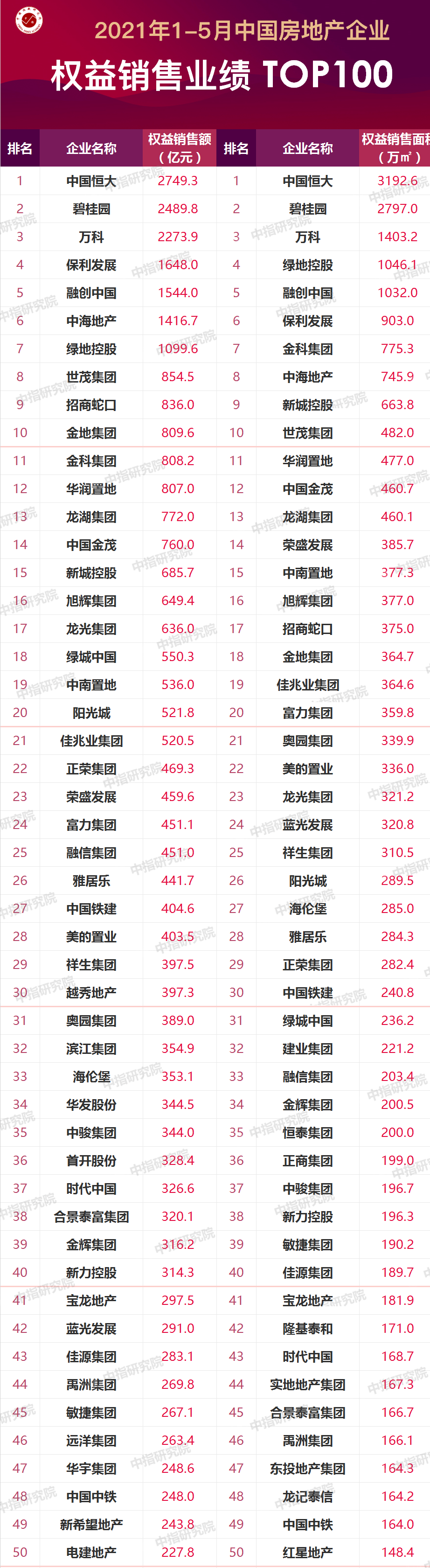 2)51-100位,起伏較大的太多了,恒泰集團(tuán)、隆基泰和、紅星地產(chǎn)、鴻翔房產(chǎn)集團(tuán)、實(shí)地、花樣年、景瑞控股、當(dāng)代置業(yè)等,運(yùn)氣似乎都不好。首創(chuàng)置業(yè),似乎沒有首開股份那么厲害。俊發(fā)集團(tuán)2021年前5月權(quán)益銷售額排名52位,如今66名。