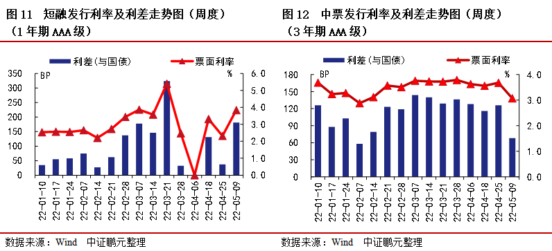 上周中票、一般公司債平均發(fā)行利率利差下行收窄,短融平均發(fā)行利率利差上行走擴(kuò);
