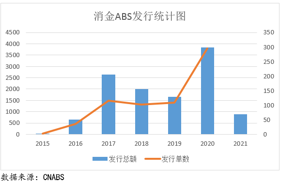 前面消費金融發展史的內容中有提到,消費金融市場在16年、17年得到快速發展,但是17年12月出臺了《關于規范整頓“現金貸”業務的通知》,去杠桿已成為大趨勢,之后兩年ABS發行的量有所下降。20年年初受疫情影響,消費疲軟,但后續隨著一系列促進消費的舉措,居民消費逐漸恢復,尤其是線上消費,使得20年消金ABS發行總量上升。但20年下半年小貸新規的出臺,進一步規范了杠桿率及聯合放貸問題,加上螞蟻花唄、借唄的發行終止,以及近日對醫美貸入池的限制,預計21年的總發行量會有較大幅度的減少。