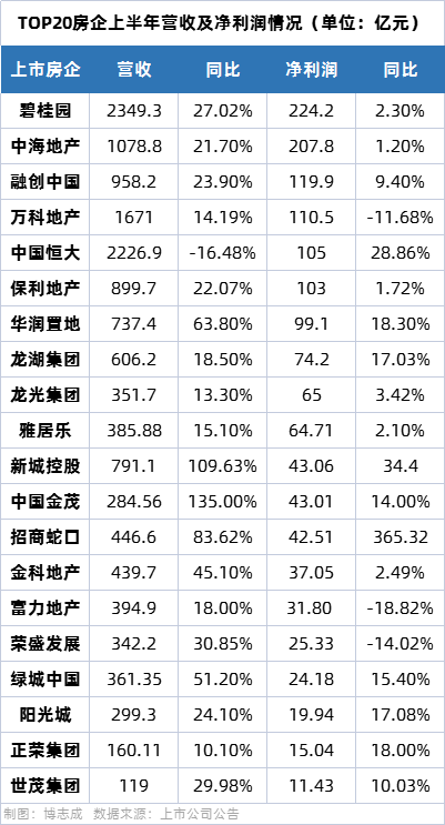 由上圖可見,大部分TOP20房企上半年?duì)I收增幅遠(yuǎn)大于凈利潤增幅,毛利率在下降,房企的盈利能力普遍下滑。