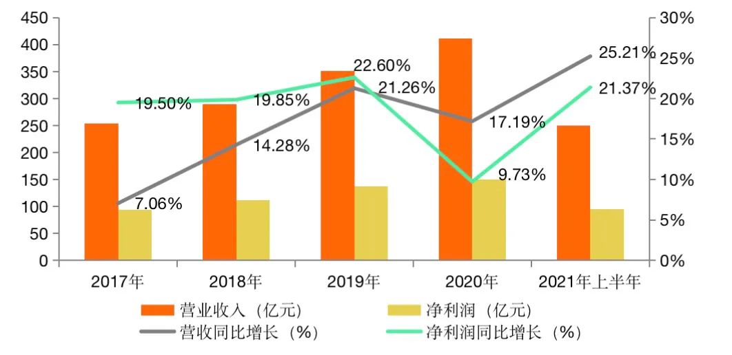 圖 2:2017年-2021年上半年寧波銀行營業(yè)收入