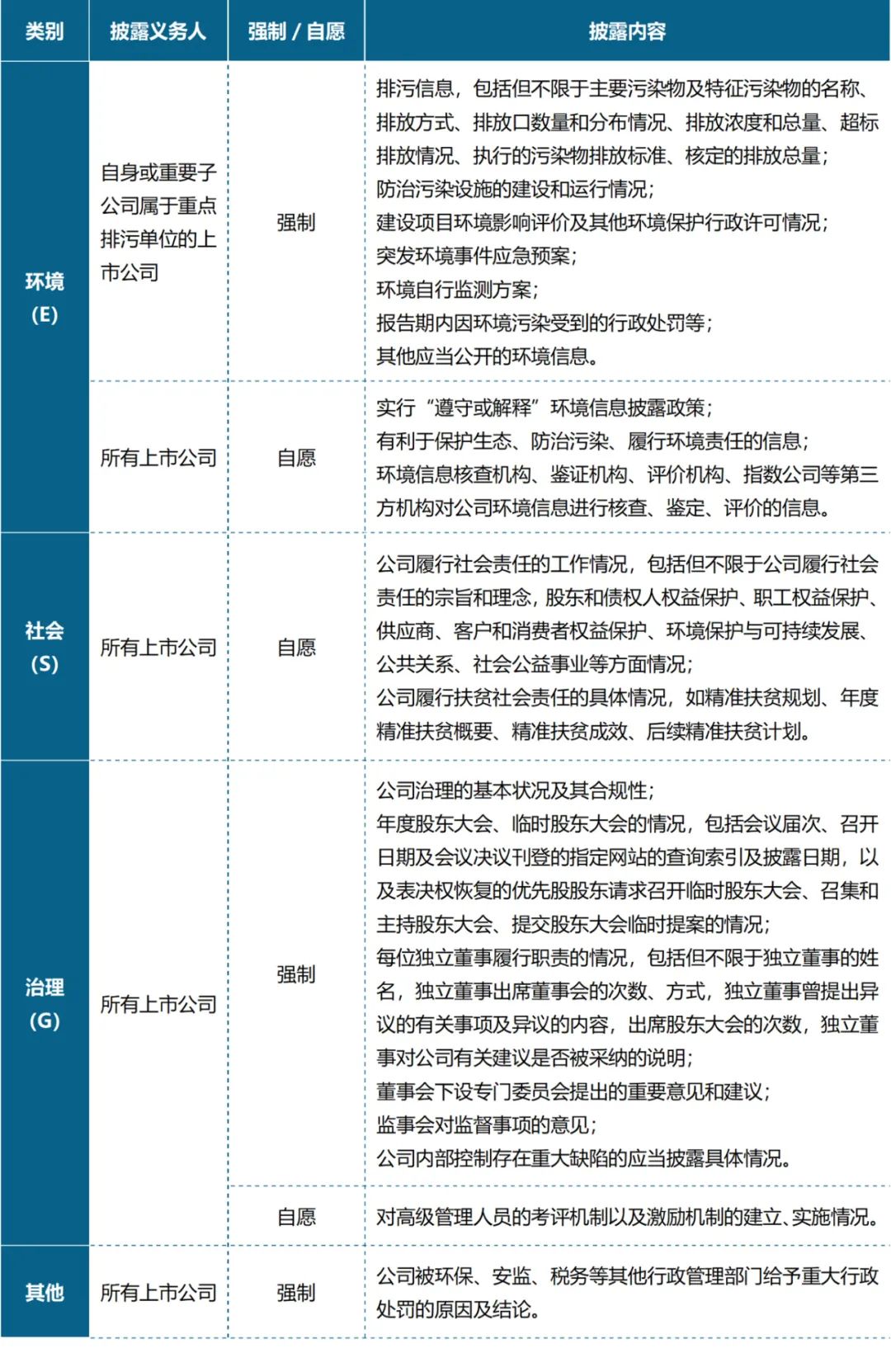 根據上述規定。境內上市公司ESG信息披露包括強制披露范圍和自愿披露范圍: