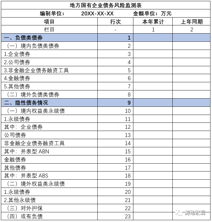 (一)附件1:地方國有企業(yè)債務(wù)風(fēng)險(xiǎn)監(jiān)測(cè)表