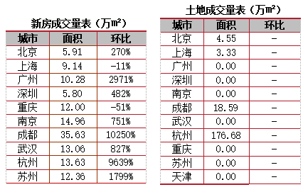 二線城市:除重慶、長沙外成交維持低位運(yùn)行以外,其他二線城市成交基本都呈現(xiàn)探底回升走勢,環(huán)比漲幅超過100%。