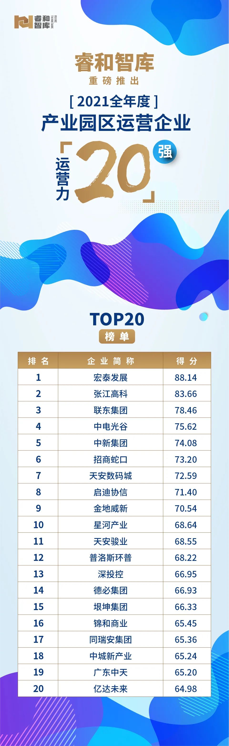睿和智庫研究部通過對眾多產業(yè)園區(qū)企業(yè)的長期跟蹤與研究,推出“2021全年度產業(yè)園區(qū)運營企業(yè)運營力20強榜單”,力圖從管理規(guī)模、項目布局、資管水平等多方面解讀其運營力表現,并對產業(yè)地產相關行業(yè)發(fā)展動態(tài)進行分析,以資借鑒。