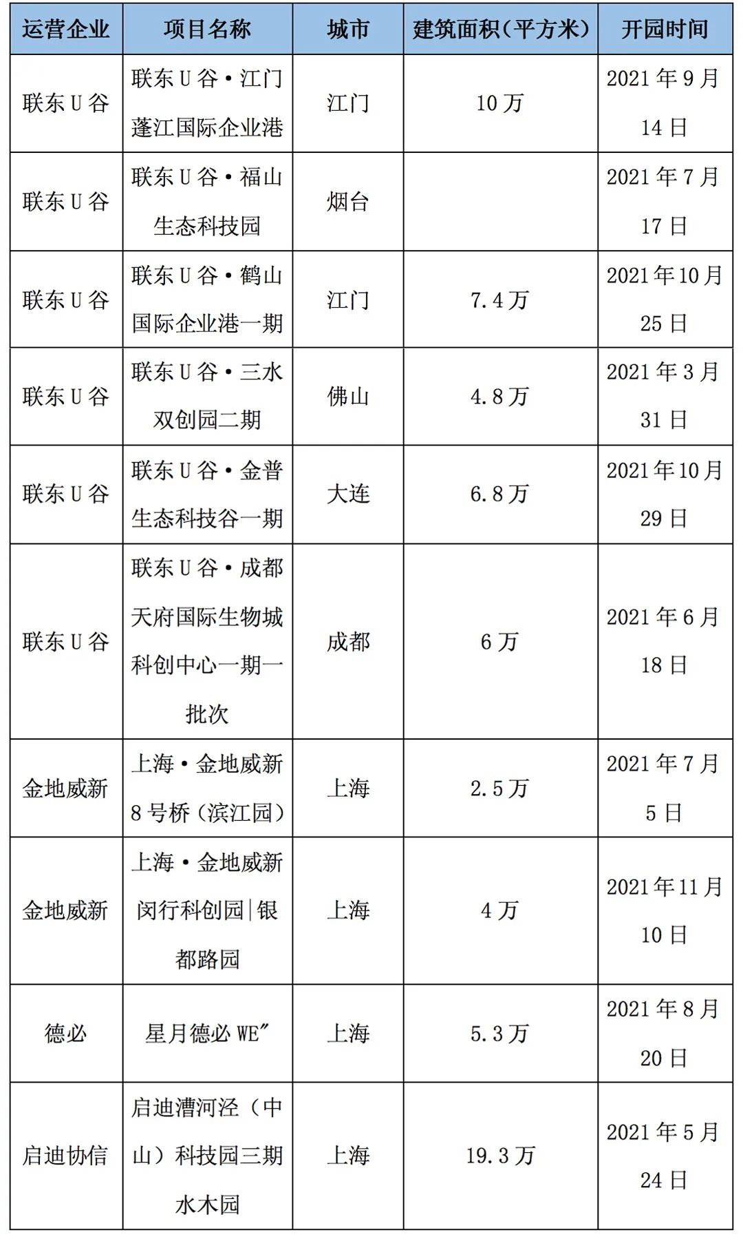根據睿和智庫統(tǒng)計,2021年全國新開產業(yè)園項目數量達80個,新增開園項目建筑面積超1300萬平方米。開園項目主要位于二線城市,數量占比達80%以上。企業(yè)方面,聯動U谷2021年開業(yè)項目為6個,數量最多。