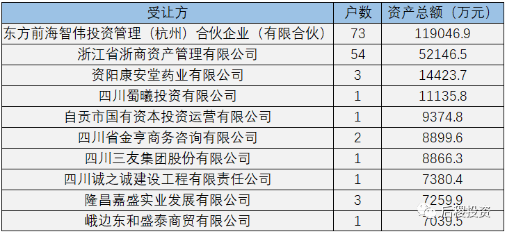 另外需要補充說明的是:本次統計四川省2019年度成交公告共計539戶,其中債權本金顯示為未透露狀態的有71戶。未透露成交記錄的明細如下: